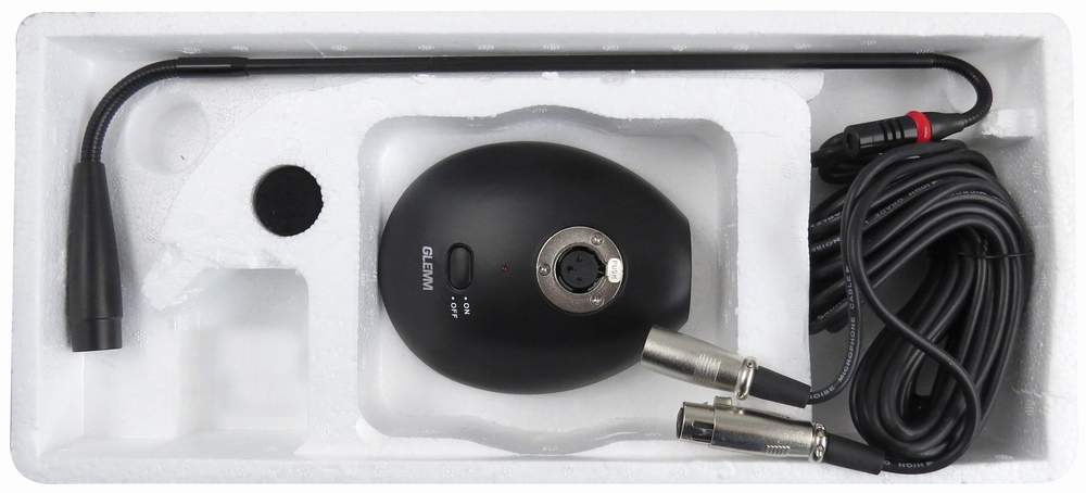 Stolový kondenzátorový mikrofón na 57cm husom krku s podstavcom a vypínačom. Napájanie z dvoch 1,5V AAA batérií alebo externé fantómové napájanie. Konektor XLR.