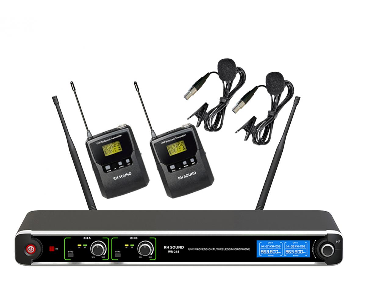 Profesionálna dvojkanálová UHF bezdrôtová mikrofónna súprava s 2x mikrofónom na kravatu. Vyznačuje sa veľkým, podsvieteným displejom na prijímači ako aj na vysielači, kvalitným prenosom zvuku a možnosťou ladenia frekvencií. Synchronizácia vysielača cez IR rozhranie. Systém s použitím FM modulácie a vysoko výkonnou novou technológiu dvojitej konverzie frekvenčnej syntézy PLL pre dosiahnutie vysokej kvality zvuku. Štandardné prevedenie šasi 1U. Mikrofón je vhodný pre široké využitie ako je profesionálne, domáce, školské, spoločenské akcie, konferenčné miestnosti a pod. Dosah až 60 m.